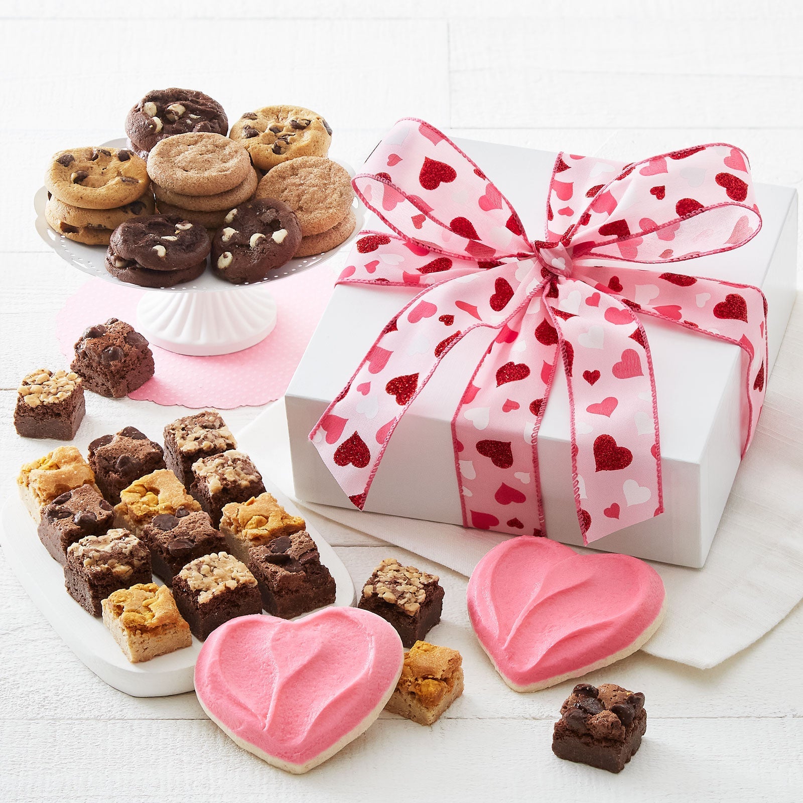 Show them yours is in the right place with a box full of treats, decorated with a hand-tied, heart-patterned ribbon._